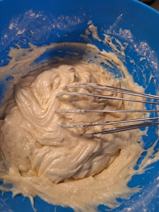 3. Към течните съставки се добавят сухите и се разбърква до получаване на кексова смес.
